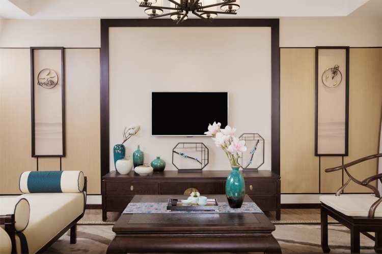 淡黄偏裸是最中式的***调,与中式的木作相结合,颇有一种展开的画面感。