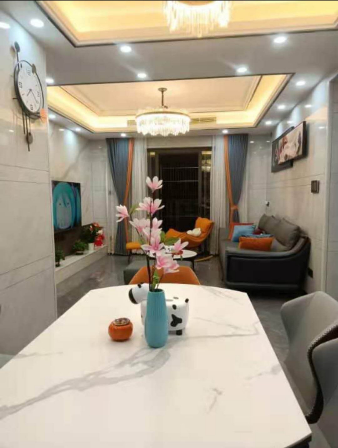 客厅使用600*1200通体大理石上墙,双层吊顶,配上连文大砖电视背景墙,彰显现代奢华