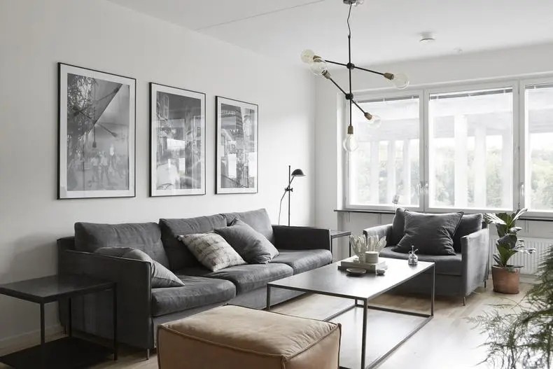 空间虽然色调简洁,但在装饰上却一点也不马虎,无论是吊灯还是装饰品,都非常有格调。挂画为实景照片,凸显主人品味。