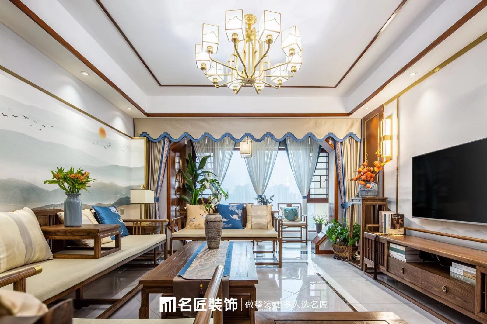 典雅精致的软装,吊灯,山水画,宛如屏风一般的移动门,东方的风韵,回味无穷