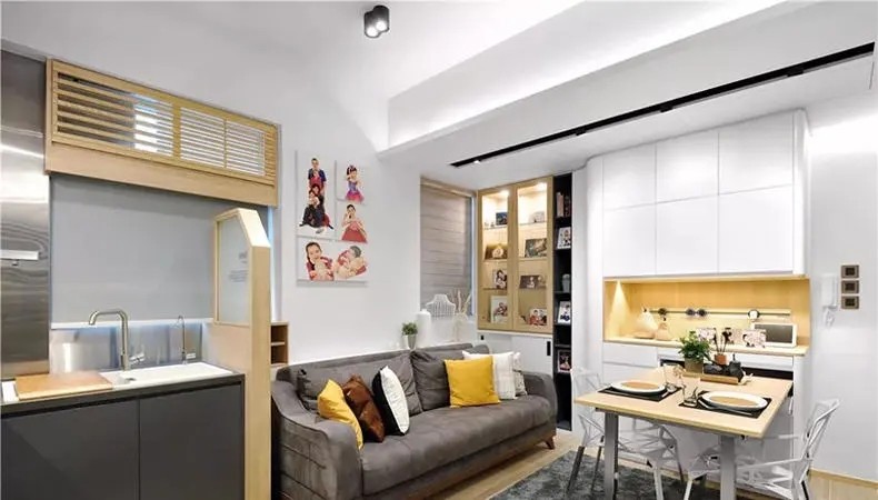 拆掉非承重墙,将所有空间展现出来,一体化设计,动线流畅,让小户型更加舒适自在