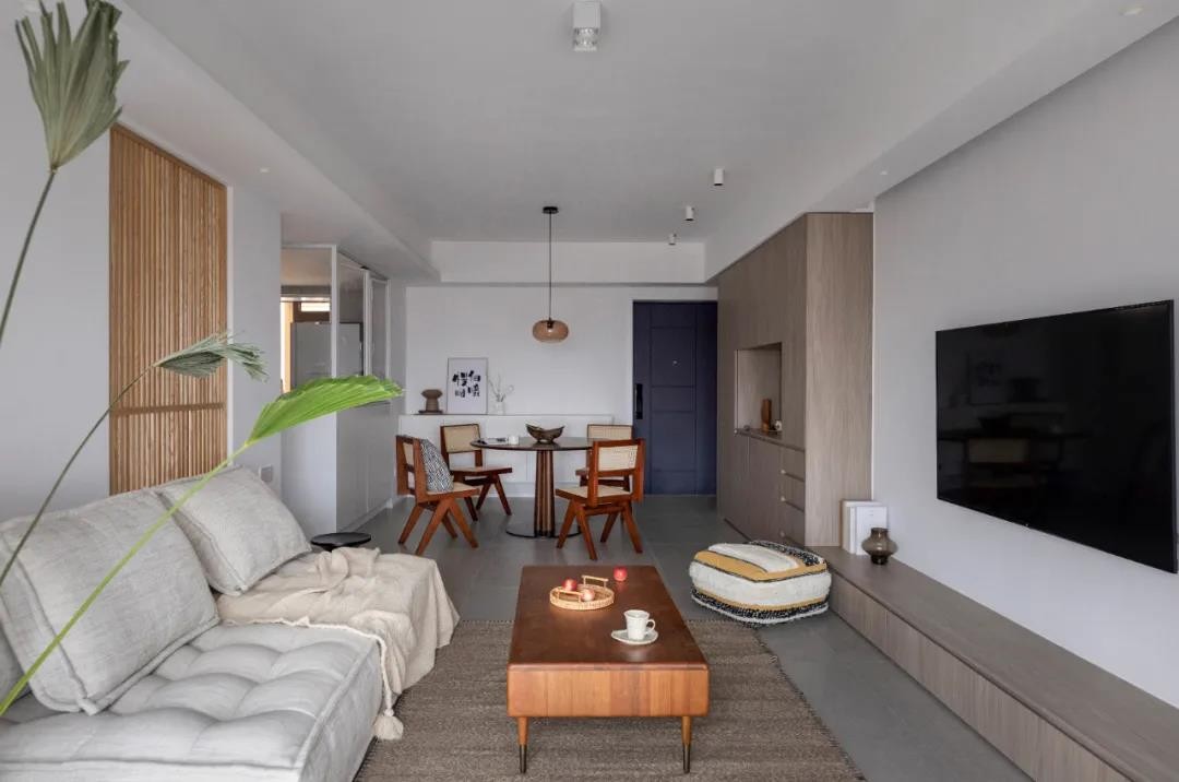 柚木茶几、藤编休闲椅、布艺沙发...既有经典简约的造型同时满足舒适度。