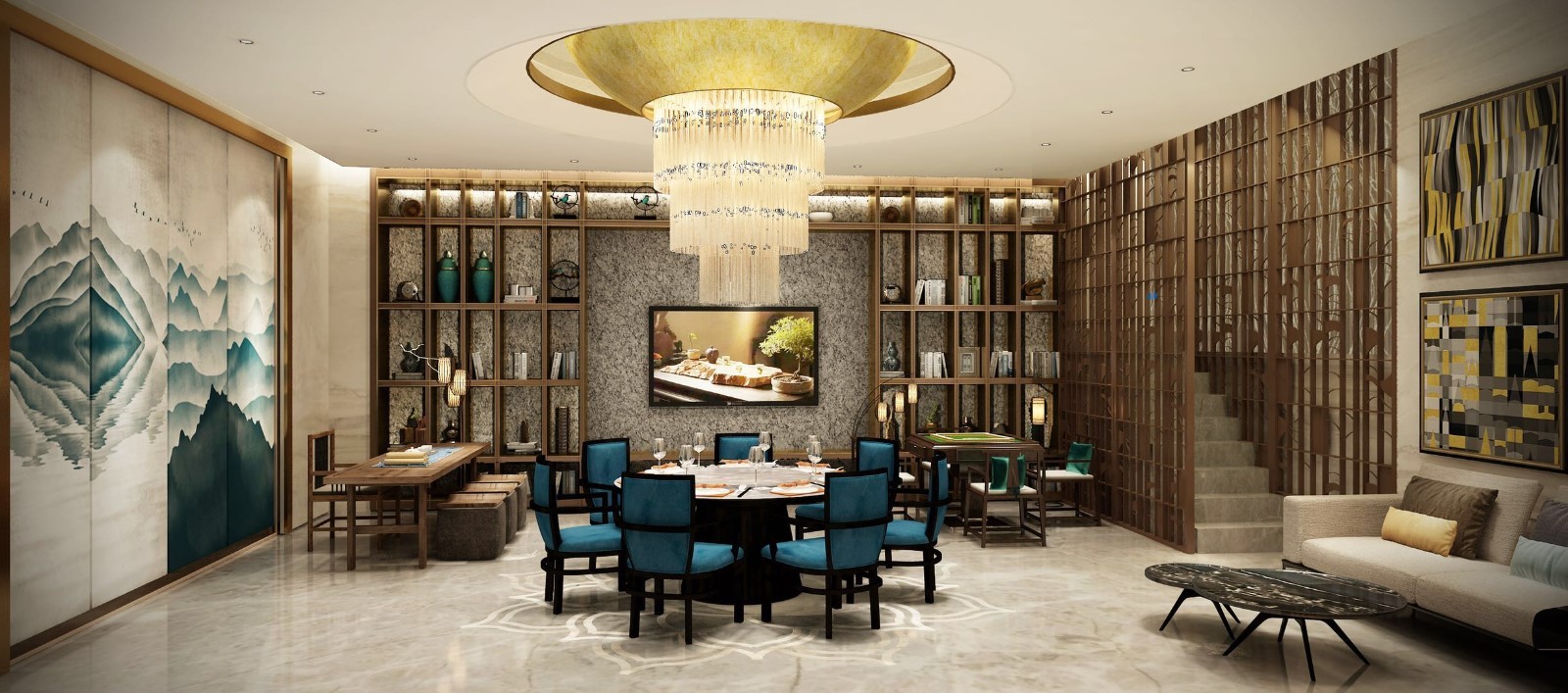 将现代元素和传统元素进行结合 营造清幽雅致的氛围