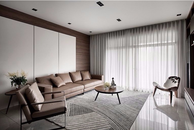 从事石油相关工作的男业主与从事中学化学教学的女业主, 拥有聪明可爱的女儿,与和善爽朗的妈妈,共同建造慵懒温馨的台式风格美家。设计师在客厅墙面材质的选择上,均采用木饰面作 为装饰,更倾向于营造出大气简约的氛围。摈弃传统吊灯的方式,采用点光源射灯,让空间中每个角落都能收集同样的光源。