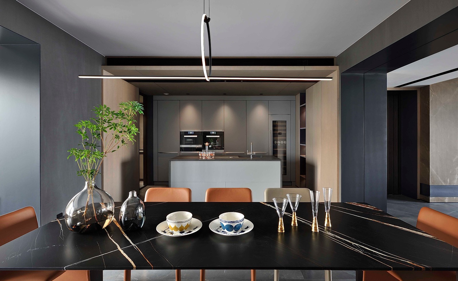 开放式厨房采用当下***的无主灯设计,空间大气通透。