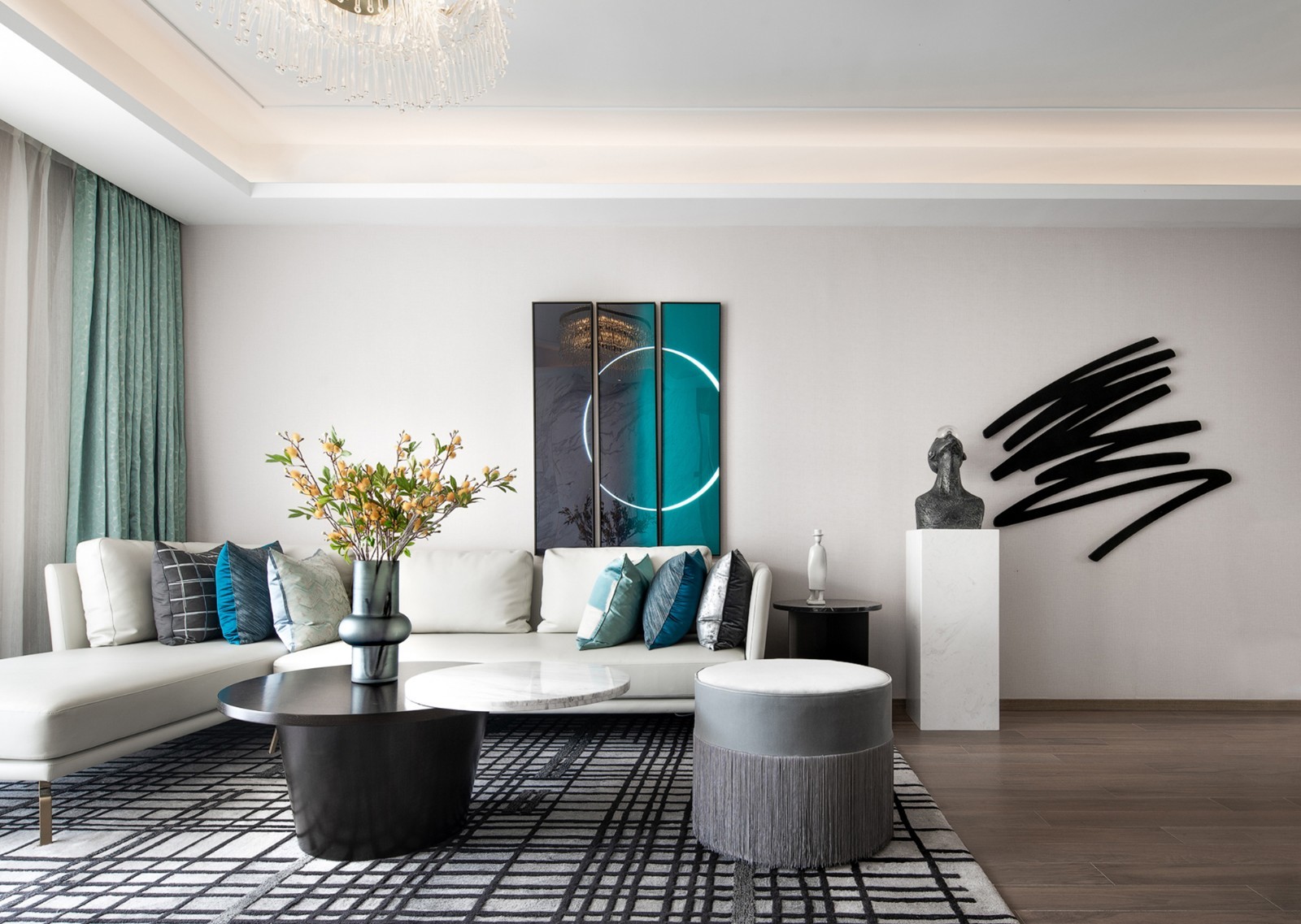 整体墙面采用很简单的白色乳胶漆进行粉刷,给屋内的软装等一系列配饰做了打底色,沙发背后的挂画,是整个空间瞬间有了浓重的一抹色彩。
