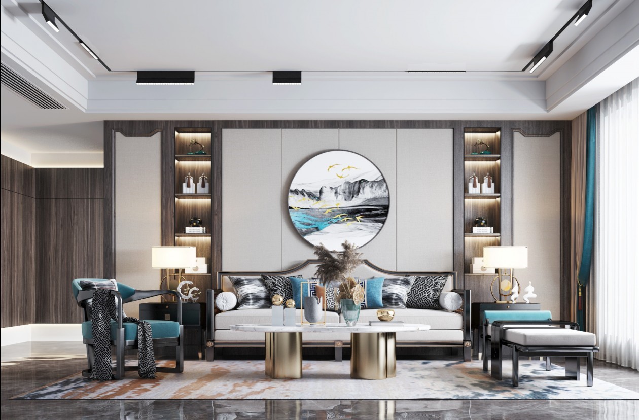 女主人相当于偏爱厨房,希望整个空间是有关联的,所以厨房也是表达现代的中式风