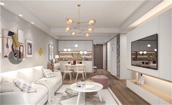 客餐厅一体化设计让空间更为宽敞,现代简约型吊灯的装饰点缀空间,一点也不突兀。