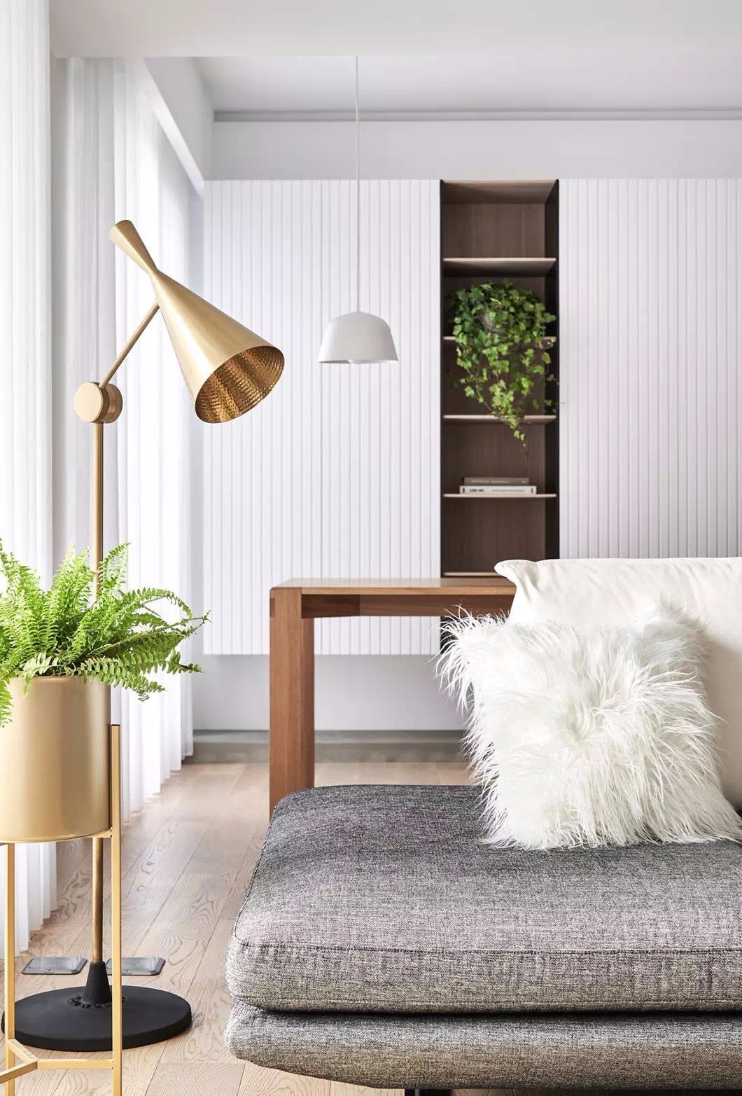 厨房的一角是靠近客厅,落地灯的方式可以增强空间感,拉伸客厅和厨房的延伸感。