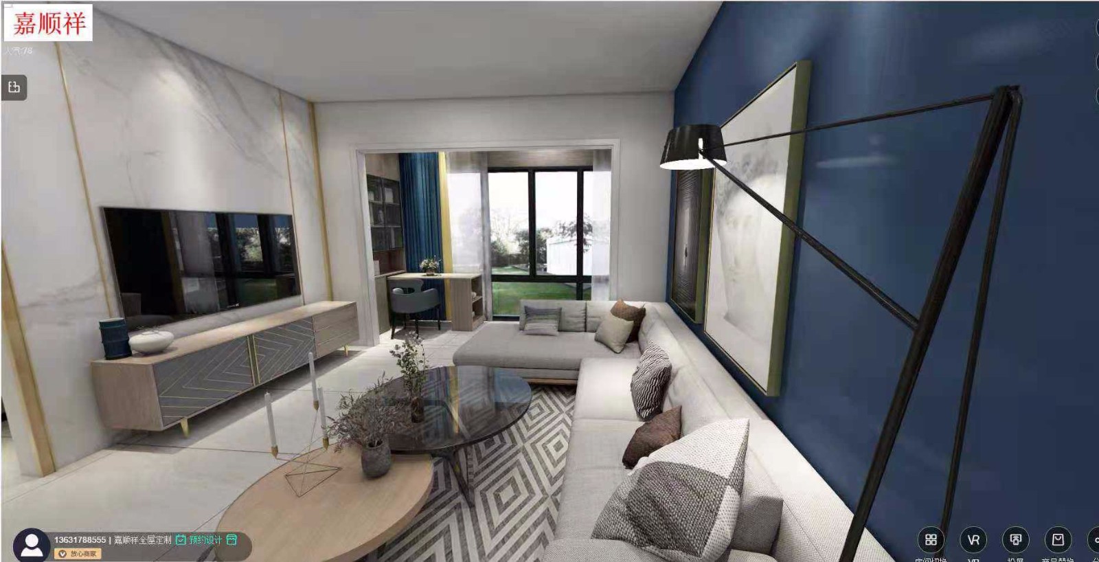 以深蓝椅子和背景墙点缀装饰,如画龙点精之笔,让空间层次分明