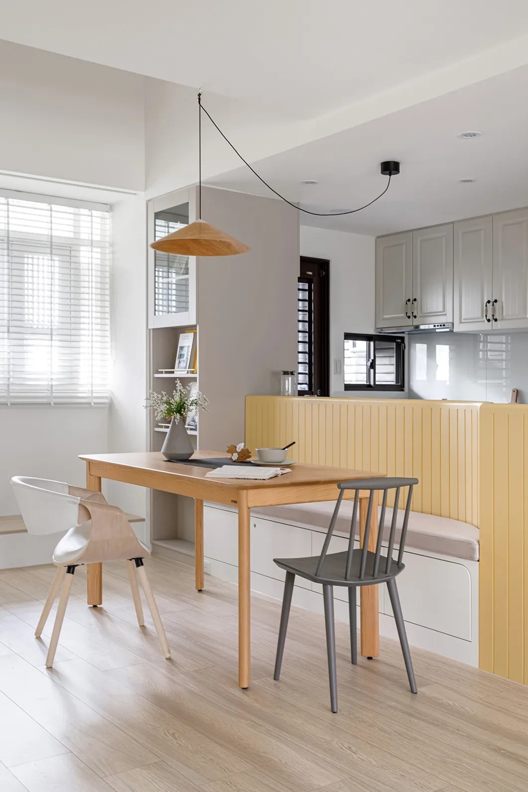 餐厅的浅色让餐厅显得格外的舒适,让这里变成一家人回家的归属