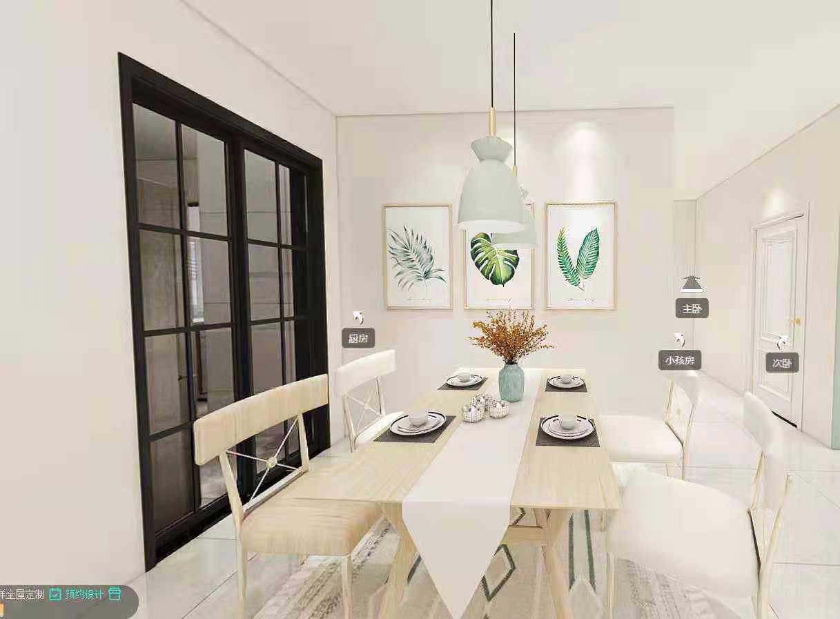 大面积留白与原木色,使整体纯粹的空间和谐统一,以绿画装饰,给人清新与自然