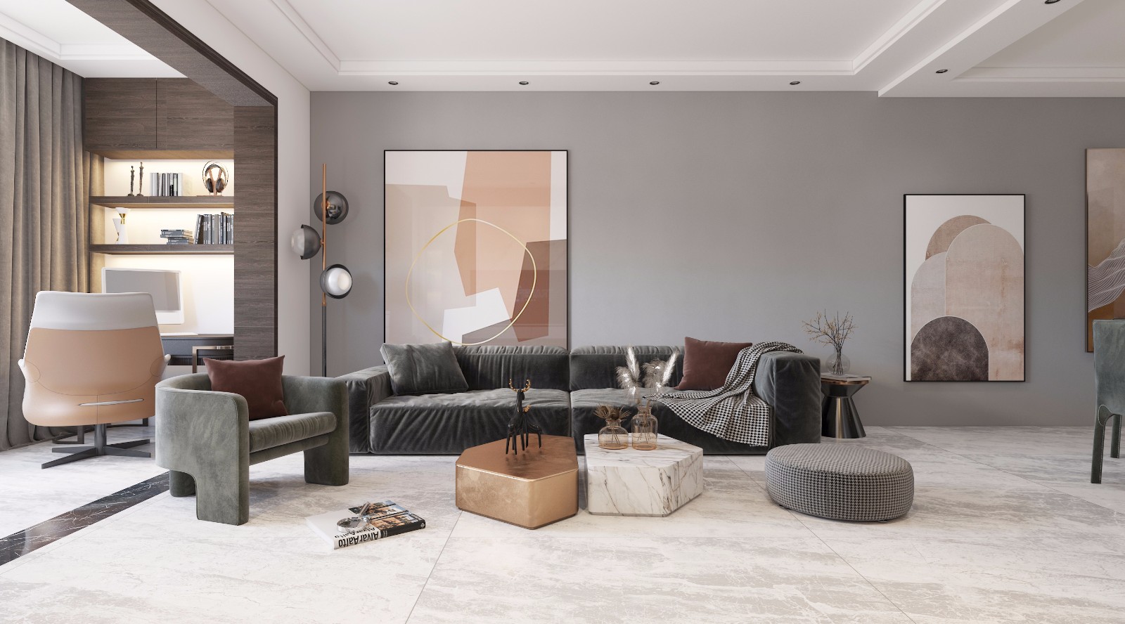 现代轻奢客厅特写效果图2