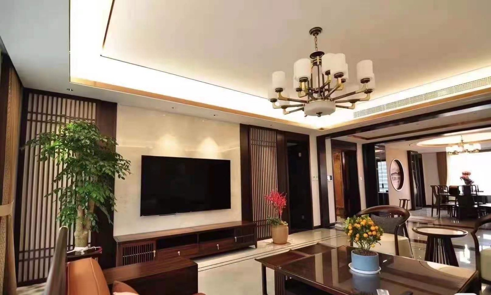 电视背景墙大理石上墙,两边搭配实木线条,凸显出整体设计的格调与典雅。