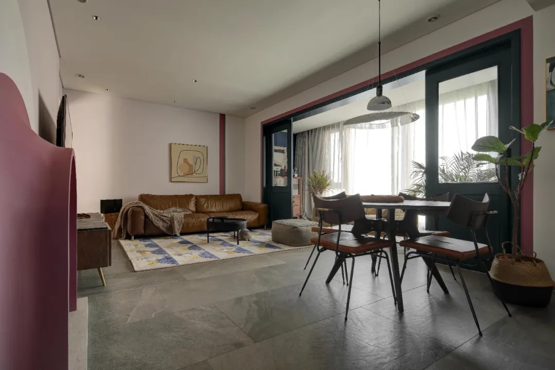 客餐厅一体化设计,将阳台封上纳入室内,增加公共空间活动面积。