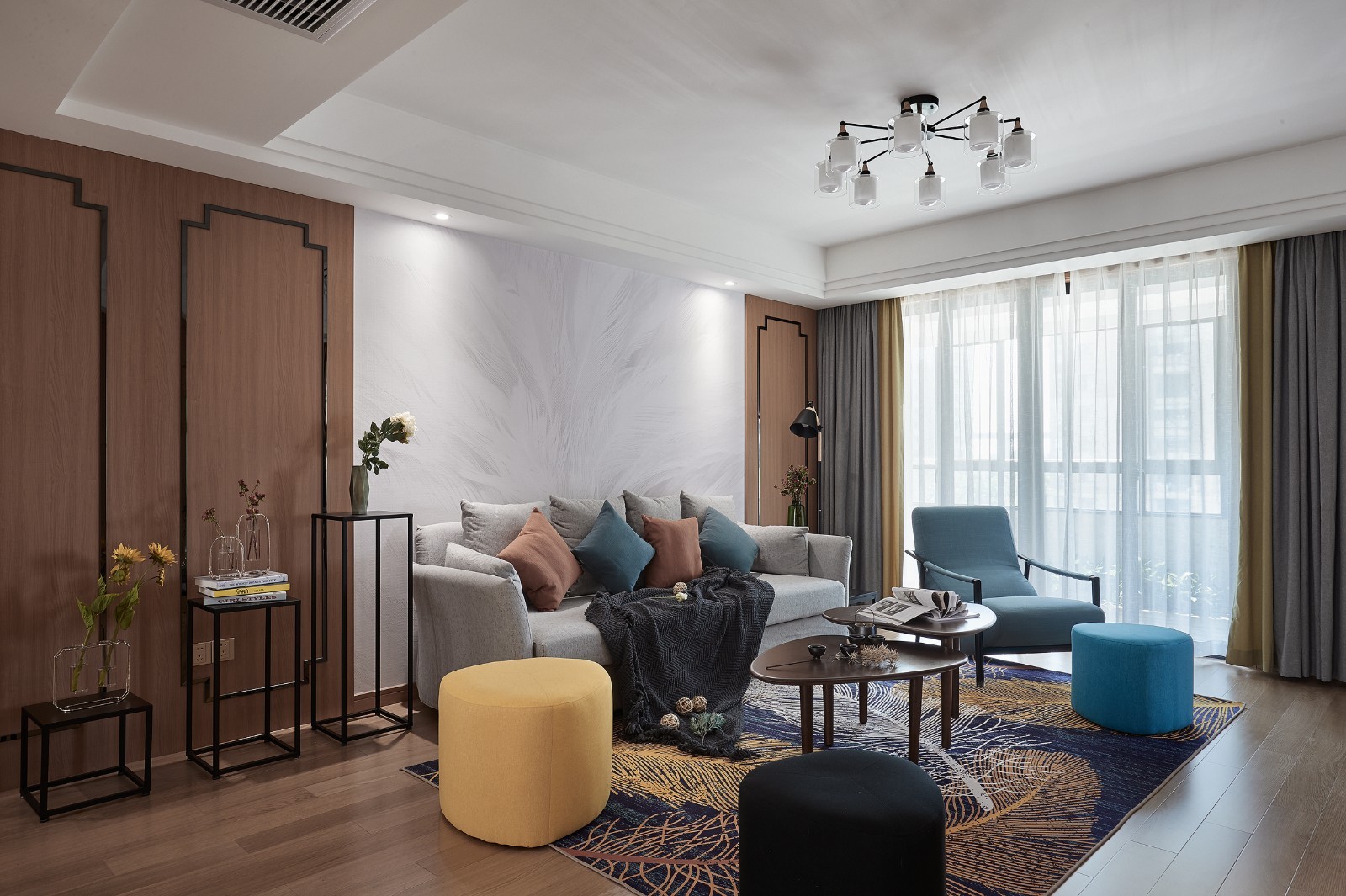 客厅色彩多偏重于原木色,以及竹、藤、麻和其他天然材料颜色,形成朴素的自然风格。
