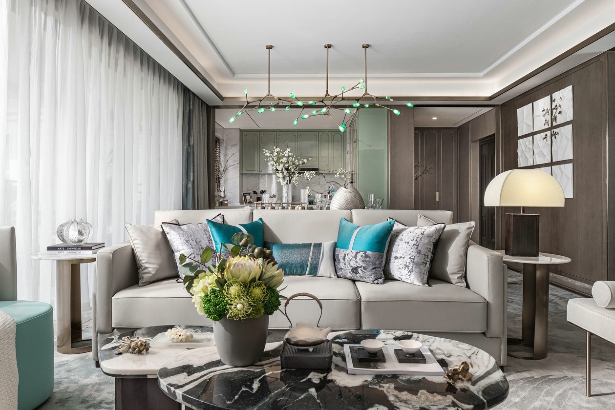 在自然资源匮乏的城市中,人们更向往与山水和谐共处。本案户型为创新小高层,软装定位为现代东方雅奢风格。硬装干净素雅,低调简约奢华的硬装氛围配合着干净利落的沉稳的灰调,略带东方韵味将优雅的姿态完美呈现。软装设计则是从这样的设计艺术提炼出“中式雅奢”风格意境中,创造了更加不可多得的韵味。从空间设计的整体画面而言,更有内在高雅而柔美的坚韧与品位。