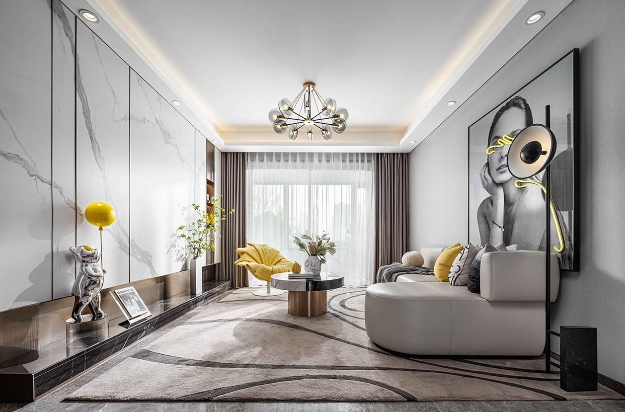 单纯的色彩才能唤起最强烈的心灵感受力。在主卧空间,选取明黄色点缀,极具线条性艺术感的背景墙,时尚简洁而不简单的都市优雅的气息弥漫。体现居室主人精致不俗的审美品位,凝构空间优雅浪漫的生活情调。