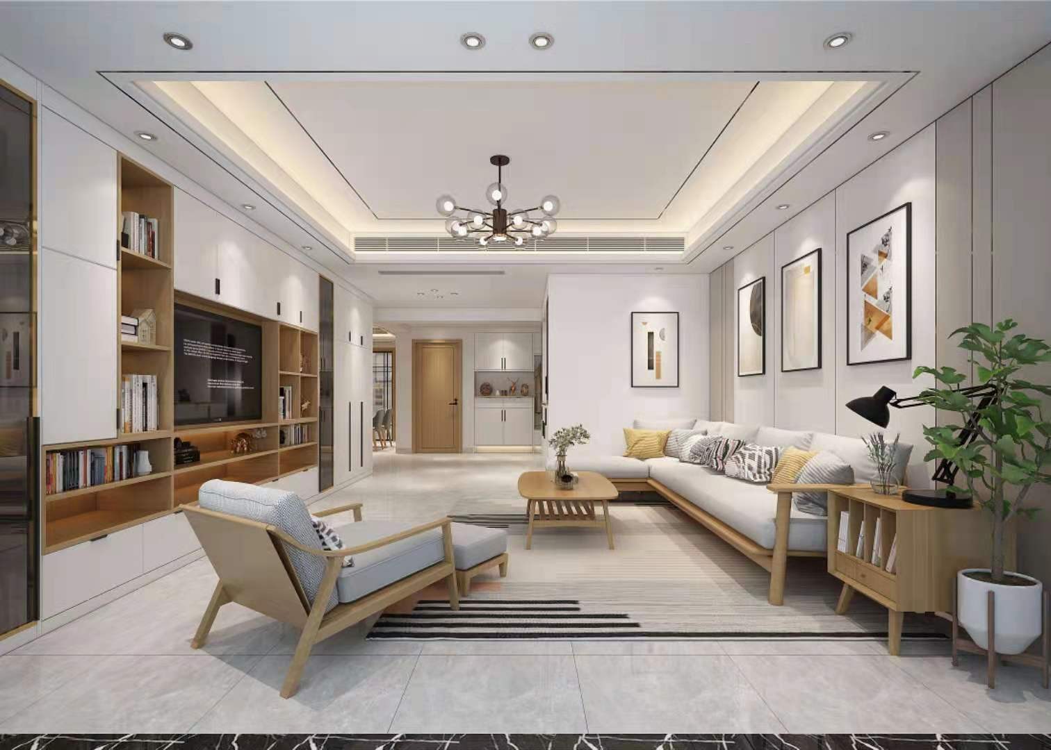 嵌入式电视背景墙,原木色设计