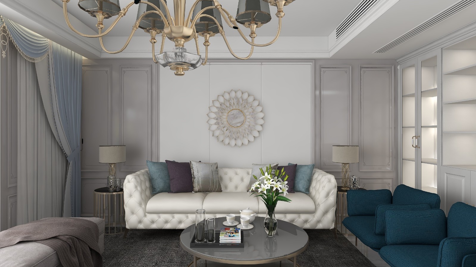 美式轻奢背景墙造型,中央空调吊顶