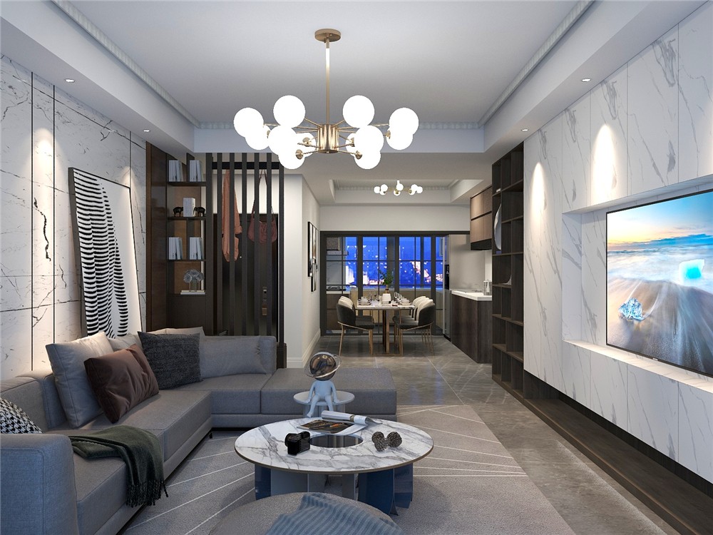 方案说明 好的室内设计并不是紧随当下潮流,而是左手繁华、右手度假般的生活体验。元禾大千引湘江景色入室内,用艺术描绘一幅与城市景色共生的现代画.