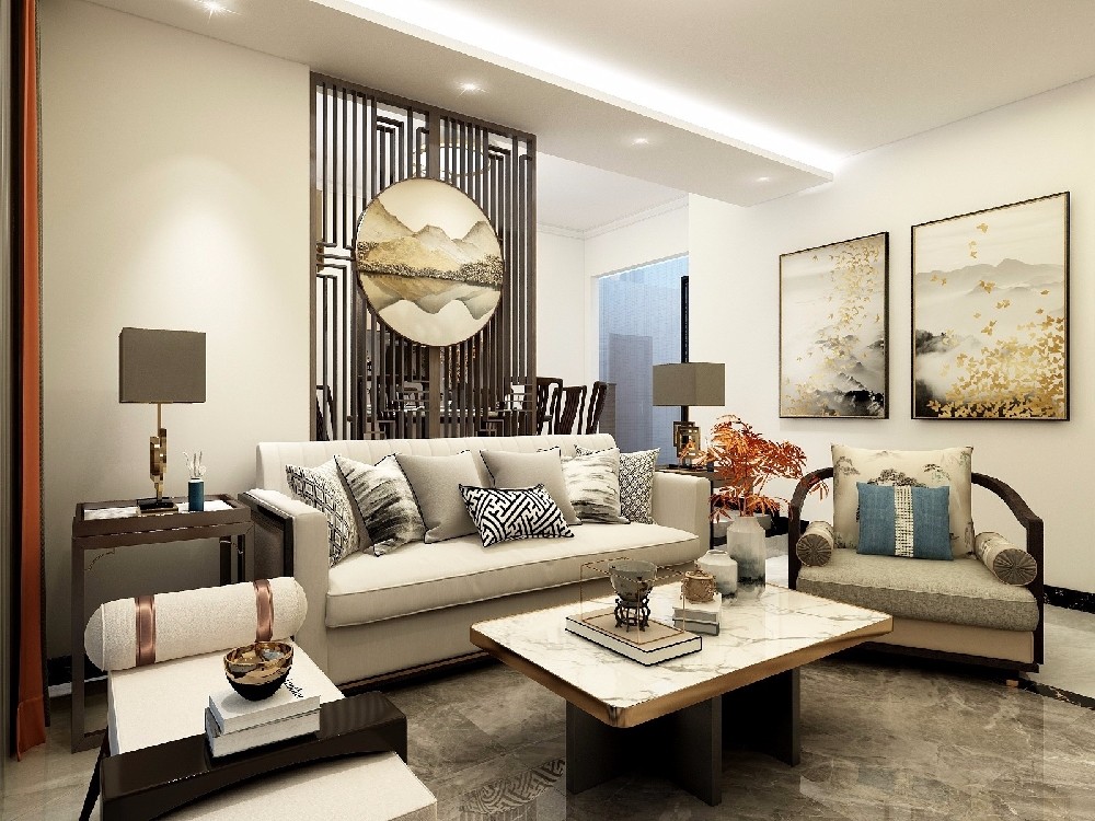 客厅 新中式风格,摆脱了传统中式的沉闷感。是中式与现代元素的相结合,打造复古、宁静的新中式。
