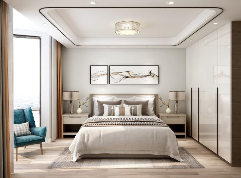 户主想让主卧看起来有品位,恰到好处的软装搭配弱化了主卧色彩单调的风格。