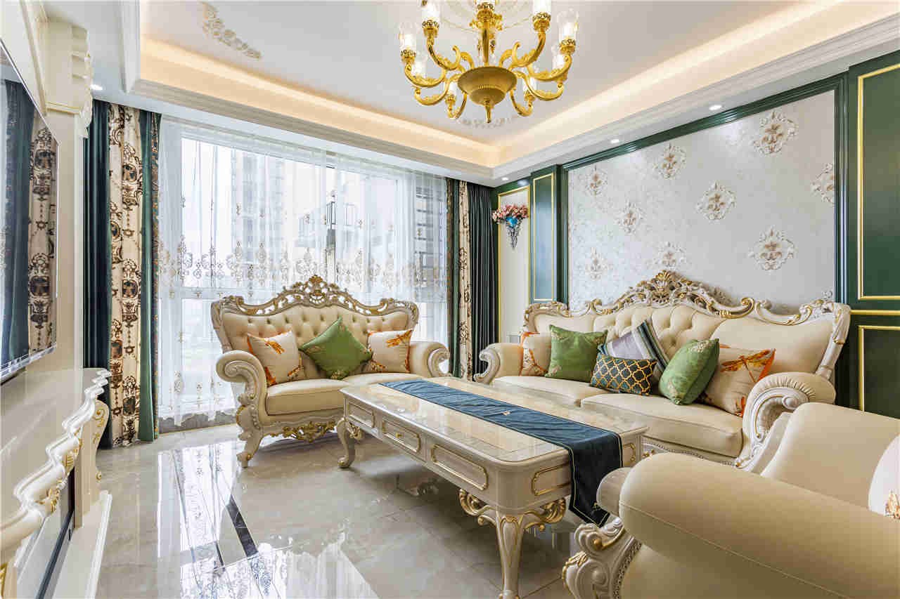 高端质感的沙发、颇具时尚气息的窗帘和客厅背景墙、尽显法式风范的魅力,总能直击人们对浪漫生活的渴望!