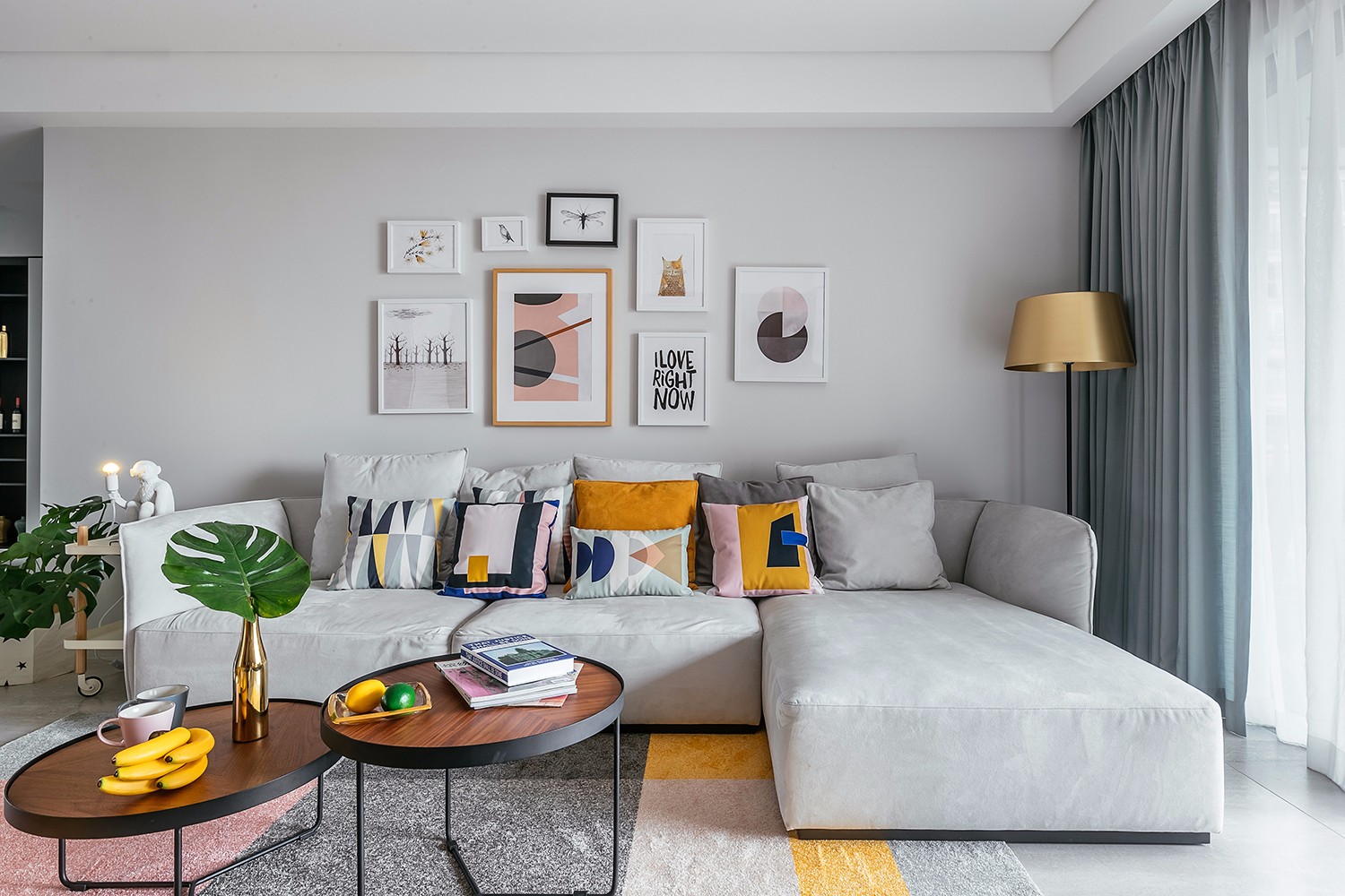简约生活,浅灰色墙面搭配浅色沙发,局部亮色点赞,享受明亮舒适生活。