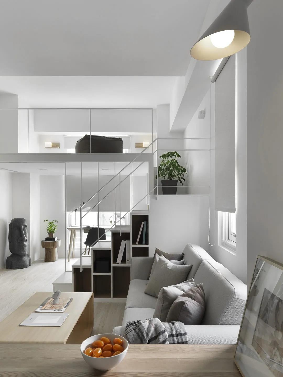 本期案例重点在留白、减少收纳区位,创造合宜的居住空间。 在整合了屋主对于未来空间的梦想蓝图后,除去量体内使空间狭隘且采光不佳的一面隔墙,并规划出使视觉效果挑高宽敞的夹层,于一室纯白中创造专属个人的乐园。