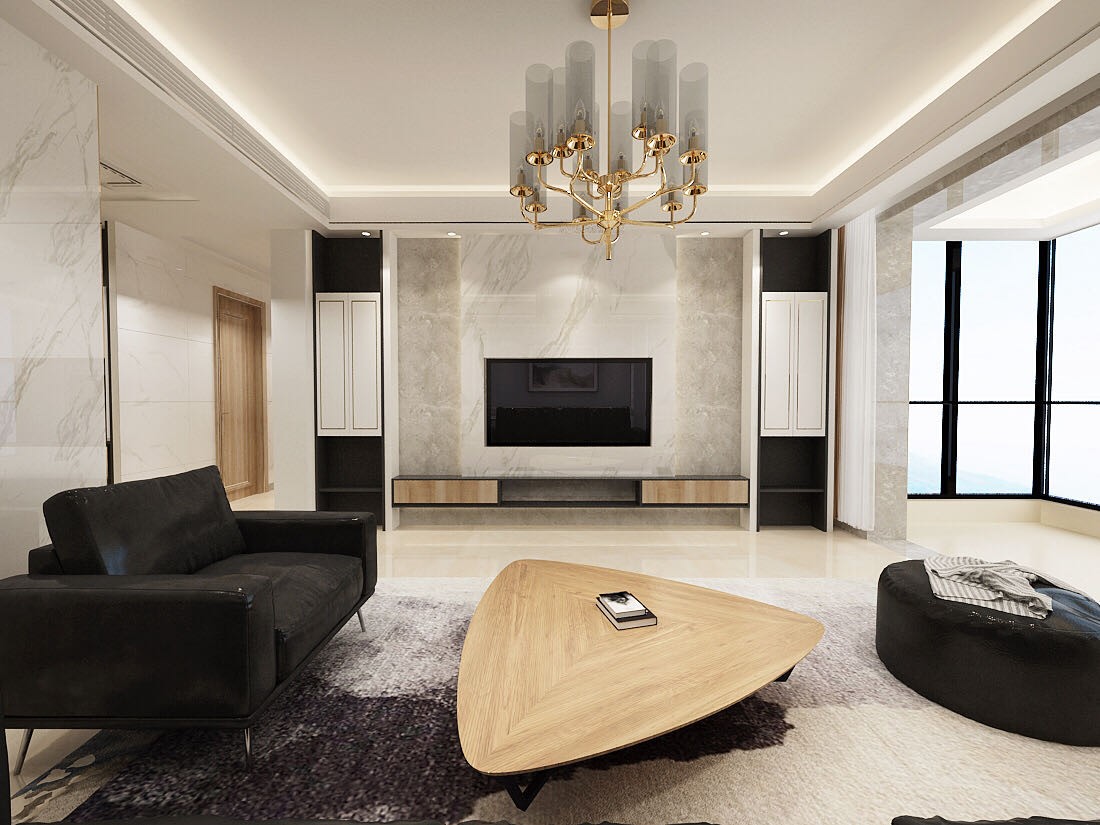 客厅的光线非常明亮,视野也很开阔,这是餐厅和厨房打通融为一体的好处。二种色彩组合而成的地毯,也给家里带来了温馨感