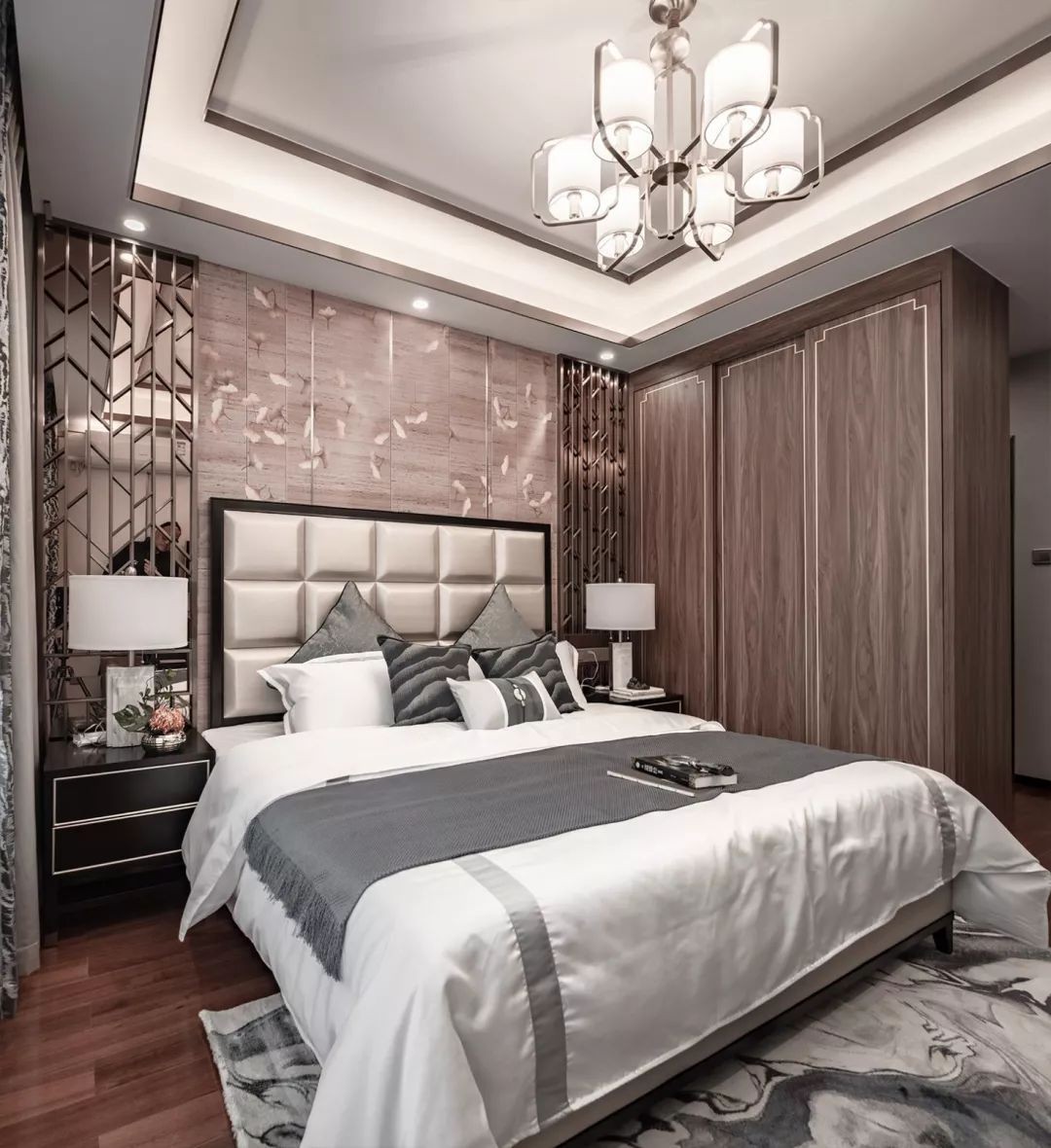 两侧床头柜对称的台灯装饰,让空间显得精致舒适好大气