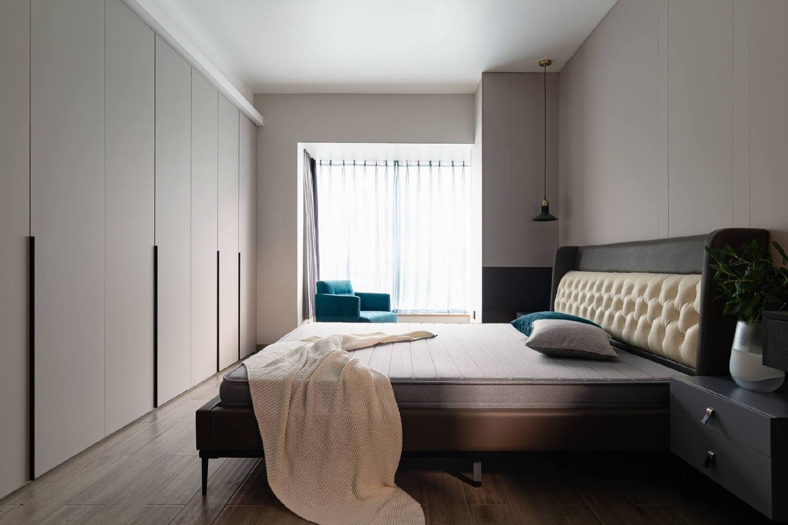 次卧将榻榻米与到顶衣柜结合 满满的储物空间