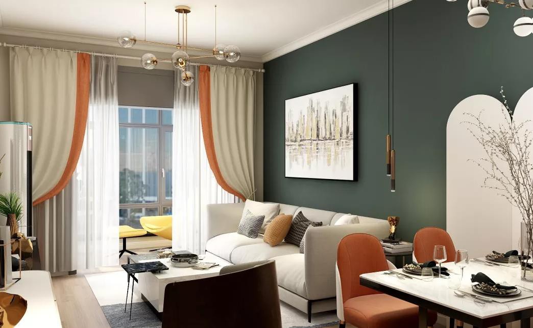 厨房空间采用亮面砖和面板,干净整洁易打理