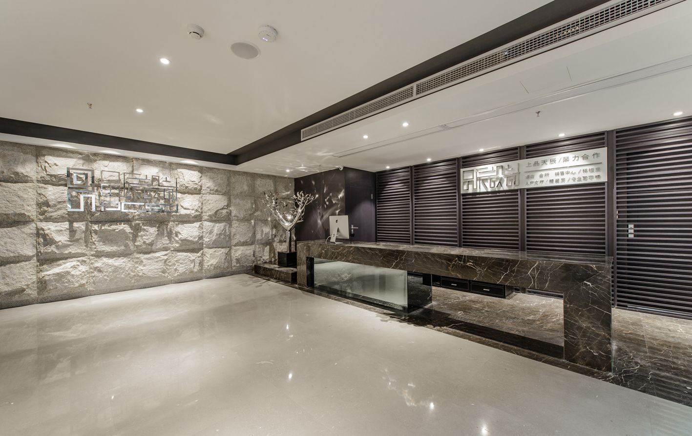 石材饰面沉稳大气,金属质感摆件增加精致感。