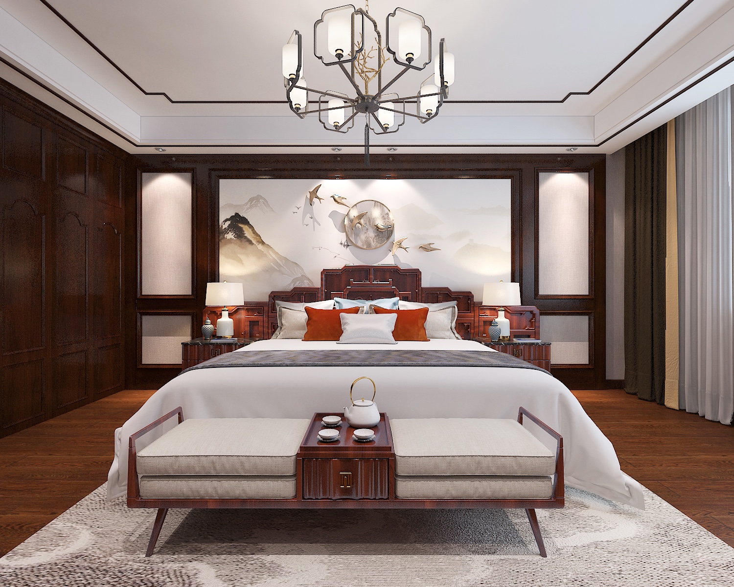 中国风装修风格中不适合色彩过多,而一般色彩以深色沉稳为主,这样整个居室的设计才能搭配起来