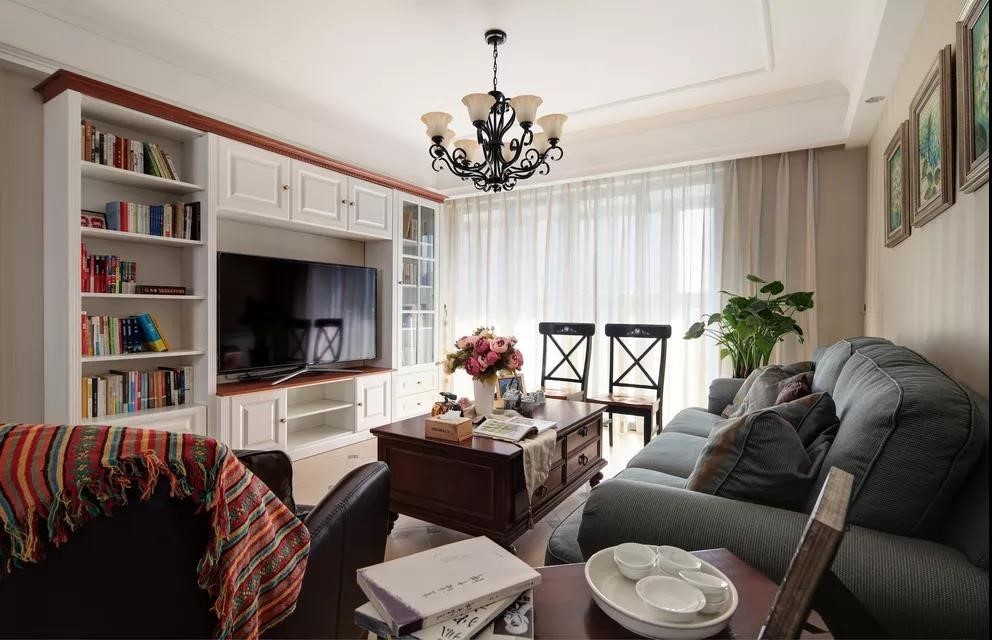 墙布+相框画,这在美式装修中算是很实惠的装修方法了,既能凸显风格本身的特点,又能省掉一大笔装修费用。
