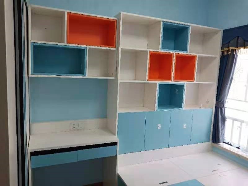 兒童房藍色橙色 拼色搭配。