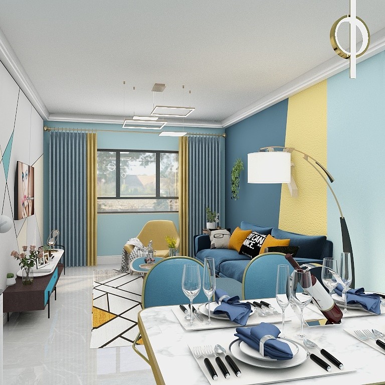 客厅:客厅主要以色彩多样化组成