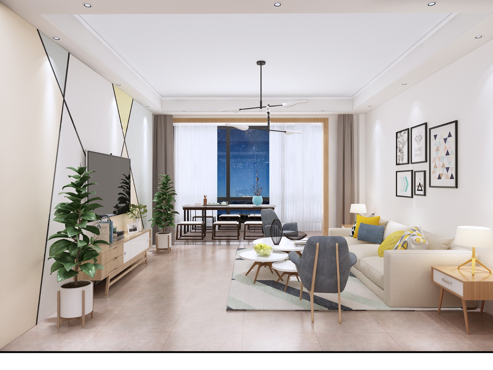 灰色这种颜色看似简简单单、不加修饰,实则蕴藏着与生俱来的原始美感。黄色衬托出空间的活力