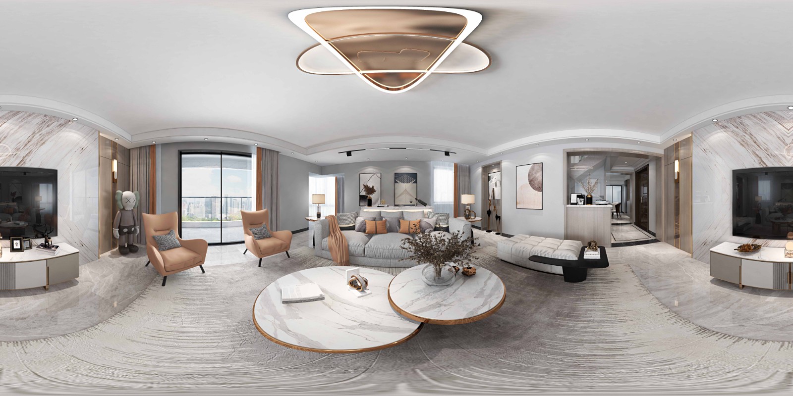 在本案中,整个客厅的视野非常开阔,采用开放式设计让各空间之间相对独立又互相联系,彰显出空间的大气感。客餐厅整体以灰色色为主色调,局部搭配浅米灰与胡桃木色,配合大理石、及不锈钢装饰,打造出简洁、大气、高雅的轻奢空间格调!