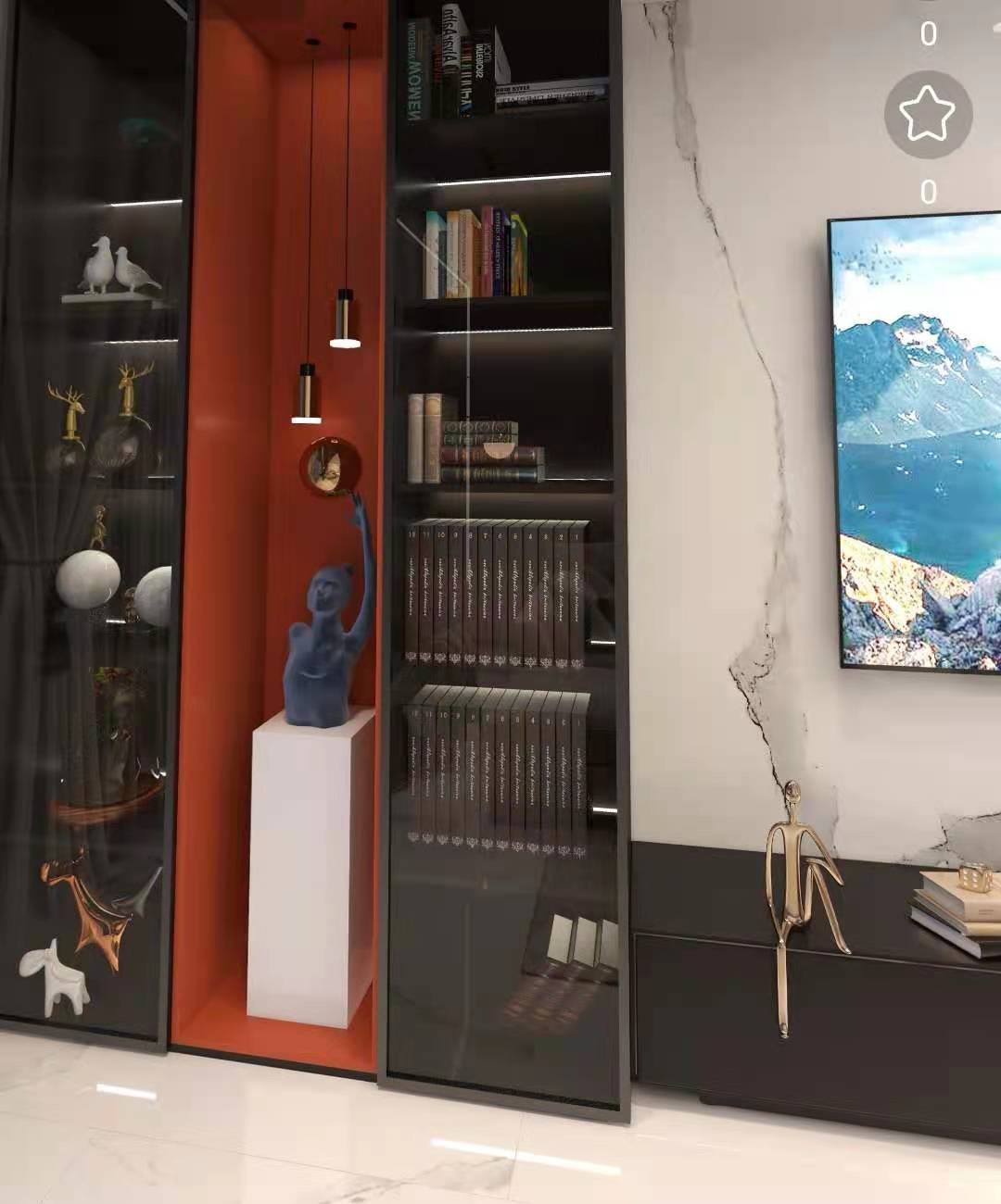 客厅空间的电视背景设计是个亮点,尤其跳色的搭配很吸睛。