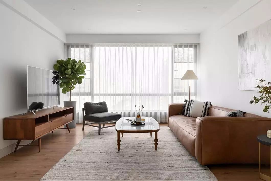 白色和原木色从客厅伸至主卧,整体统一融合,效果温馨舒适,空间敞亮通透。