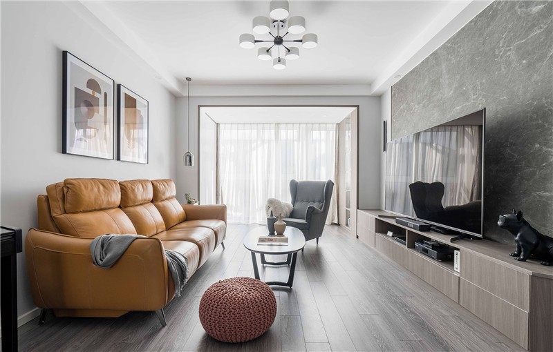 运用黑白灰三色的明暗交替,不同材质的层次错落.体现简约大气的空间,将视觉上将自然光延伸室内,勾勒温暖舒适的居主空间.