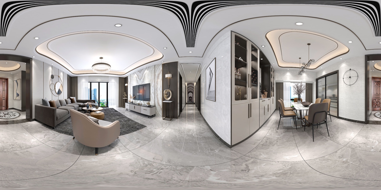 此户型为五房的布局设计,整体各功能区块分割平叙有致,动线清晰,互动性强。温和轻柔的调性在空间中缓缓展开,材质间相互低语,形意相融,简洁的笔法渲染出氤氲温雅的情感边界。