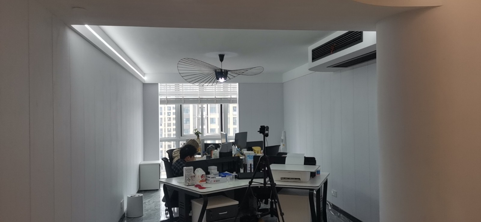 简约造型吊灯,Y字形办公桌摆放,别具一格