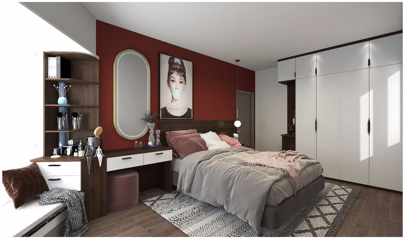 在阳台附近装上梳妆台,利用空间的同时,光线也非常好,提升生活幸福感