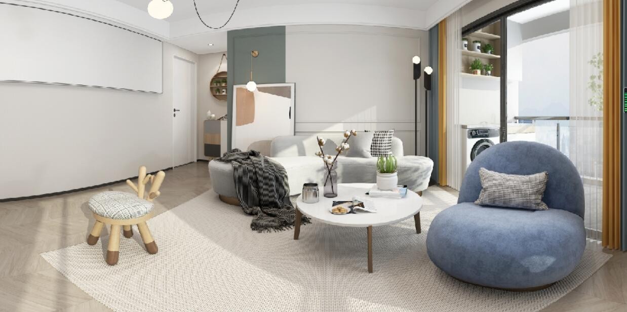 简约的线条,搭建背景墙,客厅与阳台通铺,增强空间感