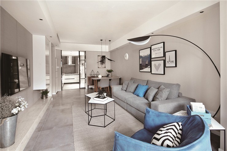 灰白色的整体色调烘托出温馨的氛围,吊顶和墙面都采用简洁的素雅处理,使得房间的空间感更强,通透性更佳。