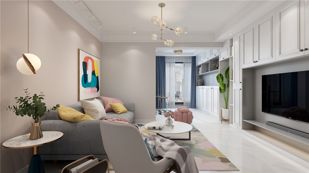 客厅低调的极简设计,简单得只剩下品味至上的慵懒闲适,在考虑美观的同时,我们也考虑到了储物功能,因为比较是居家,所以我们电视墙设计的是柜子的装饰储藏柜。